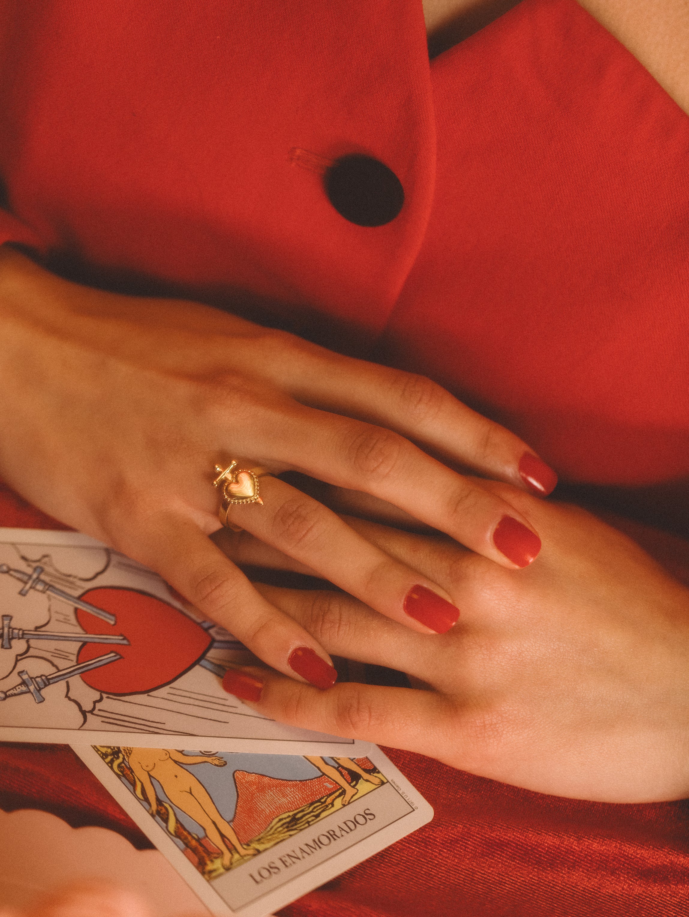 This pierced heart is inspired by the tarot card “Three of Swords”. A card that although it represents a painful moment also has a message of overcoming, a message that we should not forget.